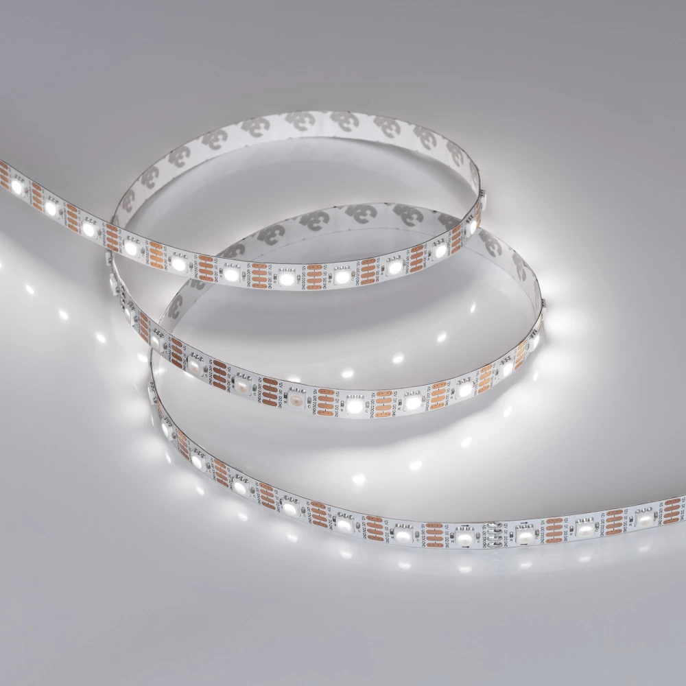 Светодиодная лента SPI серии B60 с микросхемой TX1818. Светодиоды SMD 5060, 60 шт/м, 60 pixels на 1 м (300 pixels на 5 м), 1 pixel = 1 светодиод, белая плата шириной 10 мм, скотч 3М. Цвет БЕЛЫЙ 6000K, индекс цветопередачи CRI>80, угол 120°. Питание 12 В, мощность 9.3 Вт/м (46.5 Вт на 5 м). Размеры 5000x10x2.1 мм. Мин. отрезок 16.66 мм, 1 светодиод. Цена за 1 м.