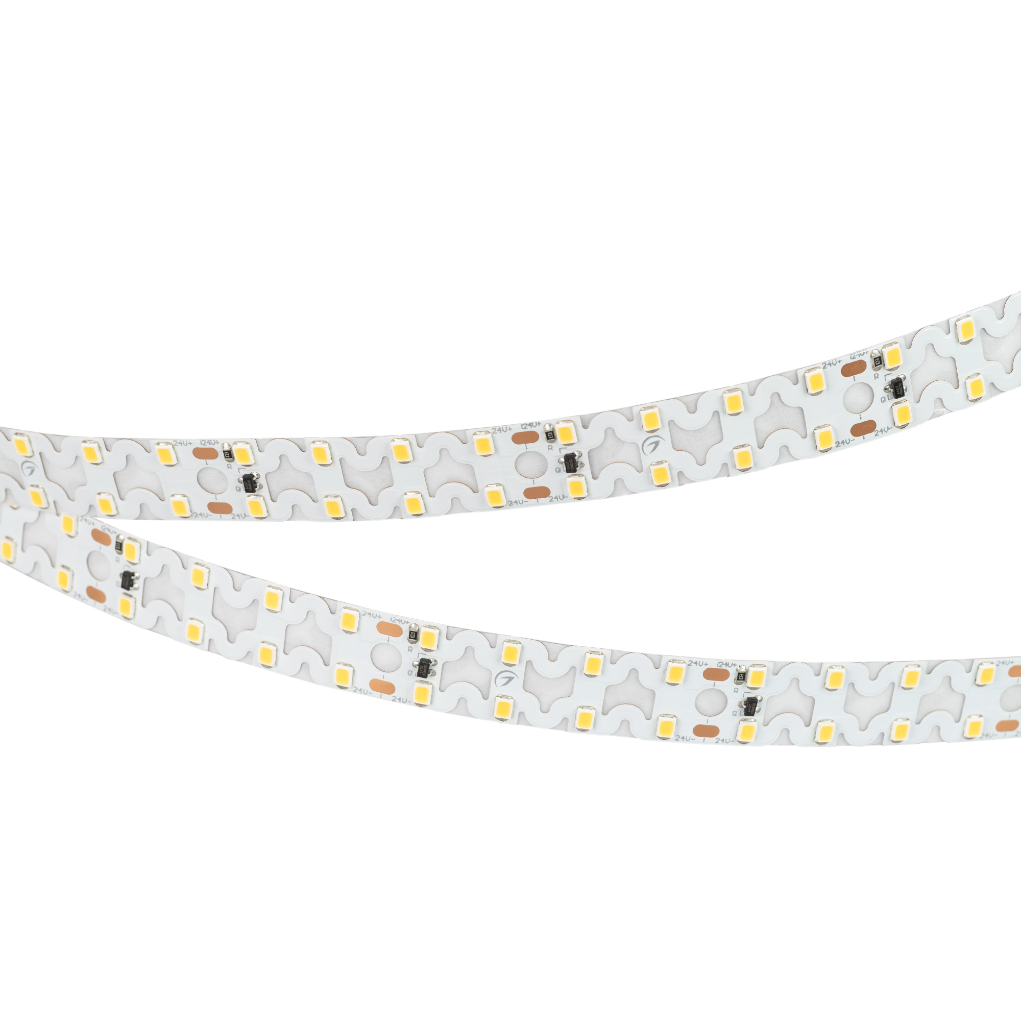 Широкая гибкая лента с фигурной платой, легко изгибается на плоскости. Светодиоды smd 2835, 160шт/м (800шт на 5м), белая плата 15 мм, скотч 3М. Цвет ТЁПЛЫЙ 2900-3100K. Питание 24V, мощность 19.2 Вт/м (96 Вт на 5м), угол 120°, цветопередача CRI>80. Размеры 5000х15х1.7мм. Мин.отрезок 50мм, 8 светодиодов. Цена за 1м.